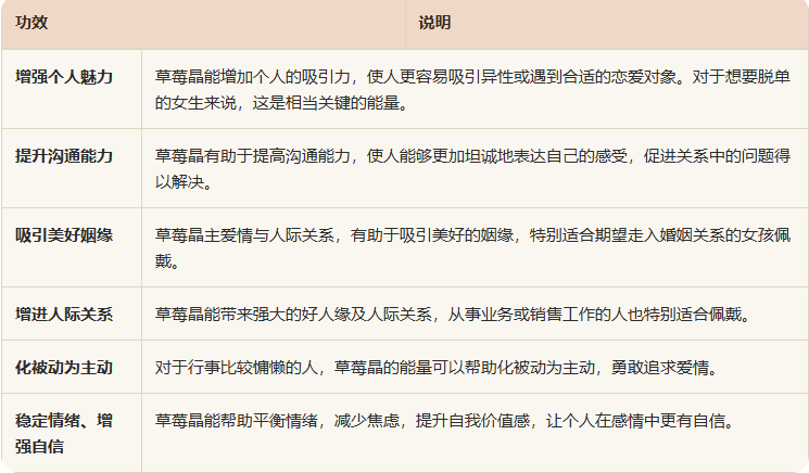 在命理观点中,草莓晶对感情运势的具体帮助如下: