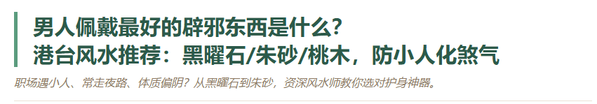 在港台地区的风水命理中,男人佩戴辟邪物品,讲究的是“阳刚护体,正气存内”。真正的辟邪并非迷信,而是通过自然材质的气场来平衡自身能量,抵御不良磁场。那么,男人佩戴什么辟邪效果最好?本文从风水命理角度,为你详细解析黑曜石、朱砂、桃木、玉器、红绳、本命佛等常见辟邪饰品的功效、佩戴讲究与净化方法。