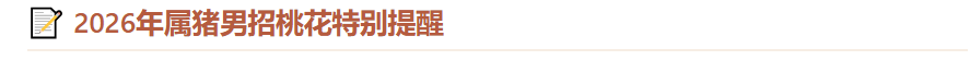 2026年为丙午马年,属猪人逢“亥午暗合”及“咸池”星动作用,易生隐秘桃花与短暂情缘。属猪男性需注意以下几点:
