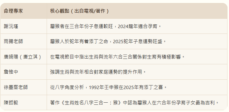 綜合台灣地區多位命理專家的觀點,1992年出生的屬猴女性,2024年(龍年)、2025年(蛇年)、2026年(馬年)都是添丁的良機。其中2024年有三合吉星眷顧,2025年為六合之年,子女運勢尤為旺盛。