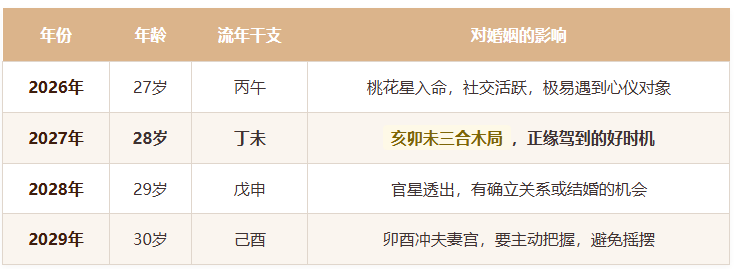 重要提醒:以上年份指的都是农历年份(如2027丁未年,从2027年农历正月初一开始),请以当时的具体时间为准。缘分来的时候,勇敢接住就好。