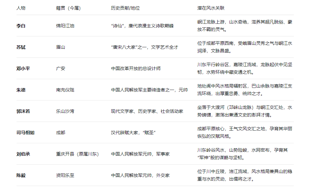 三、 地灵人杰:龙脉滋养下的四川人物