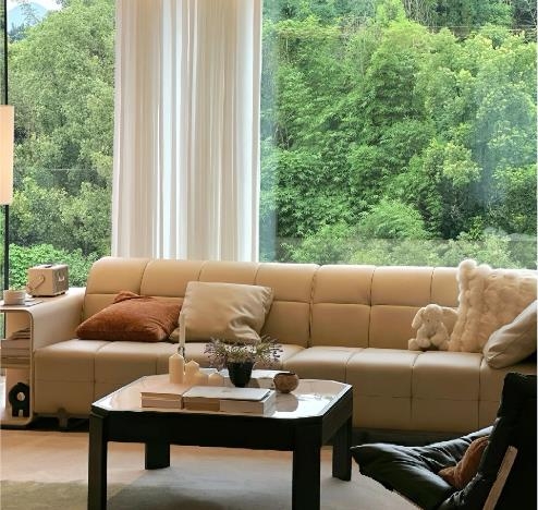 - 避免背后是落地窗:如果是落地窗且无法改动,尽量在窗前放一排低柜,人在沙发上时,视线不被完全看穿