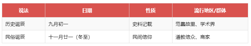 - 源于二十八星宿分野理论:陶地(范蠡经商之地)对应星宿张宿,冬至日月亮行至张宿位置,故定为诞辰