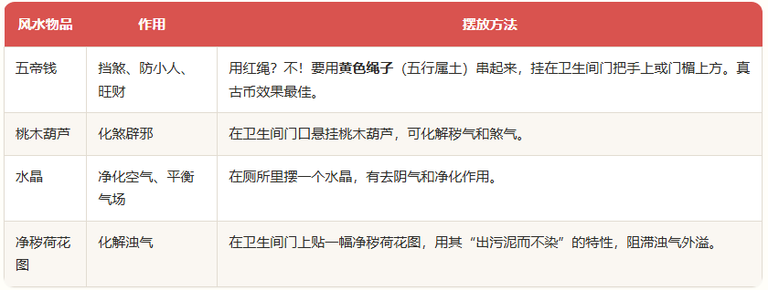 3️⃣ 在卫生间门框上挂五帝钱(用黄绳穿)。