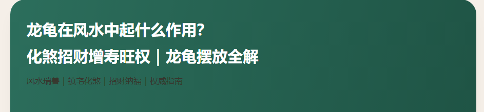 ※ 本文依据传统风水命理观点撰写,仅供参考。摆放龙龟应结合住宅实际格局,心诚则灵,积善之家必有余庆。