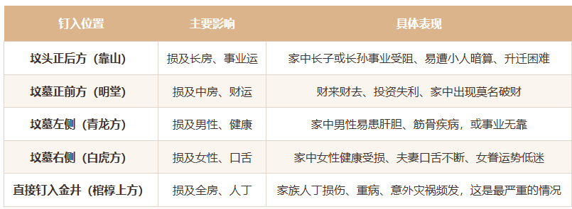 - 家族成员的生肖:与坟墓坐向相冲的后代,会最先感受到不适,如身体莫名疼痛、事业突然受阻等。