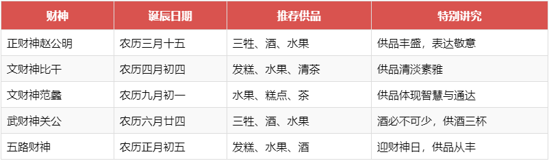 五、不同财神诞辰的供品讲究