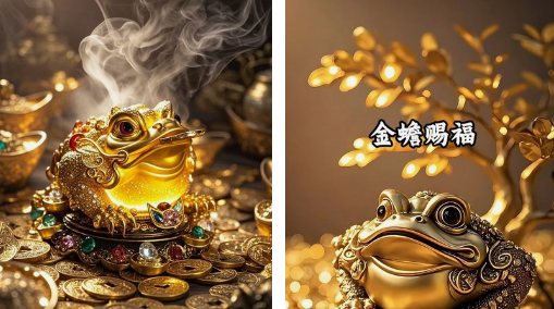 最吉的一种:清晨开门发现院子正中间放着一只崭新的铜金蟾,没有任何痕迹——民间说法是“天降横财”,接下来半年财运挡都挡不住。