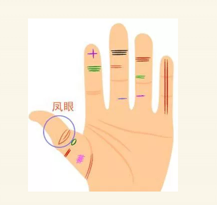 大拇指第一節和第二節之間,如果出現一條或多條像眼睛一樣的紋路,這就是鳳眼紋。有這種紋路的男人,天生具有大愛無私、溫厚善良的品質。