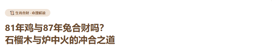 81年鸡和87年兔合财吗?石榴木与炉中火的冲合之