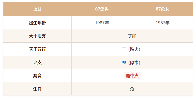 87兔男的納音是爐中火,87兔女也是爐中火。爐中火不是野火,是封在爐中、火力集中的煉器之火。兩把爐中火相遇,會發生什麼事?