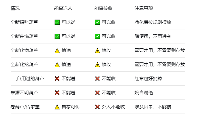 各位缘主,葫芦虽小,风水事大。送人葫芦也好,收人葫芦也罢,都要多一个心眼——问清来源、辨明新旧、分清功能、按规处理。