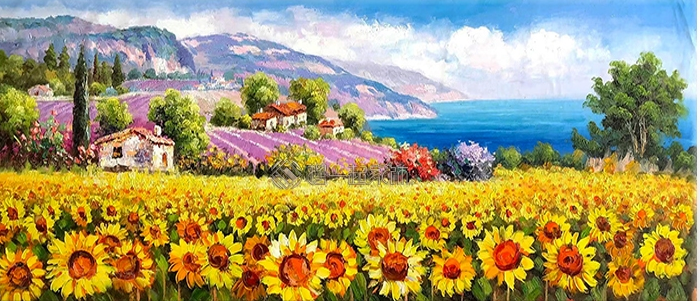 - 畫面品質:選擇色彩明亮、花朵飽滿的向日葵畫作,避免凋零或暗沉的畫面。