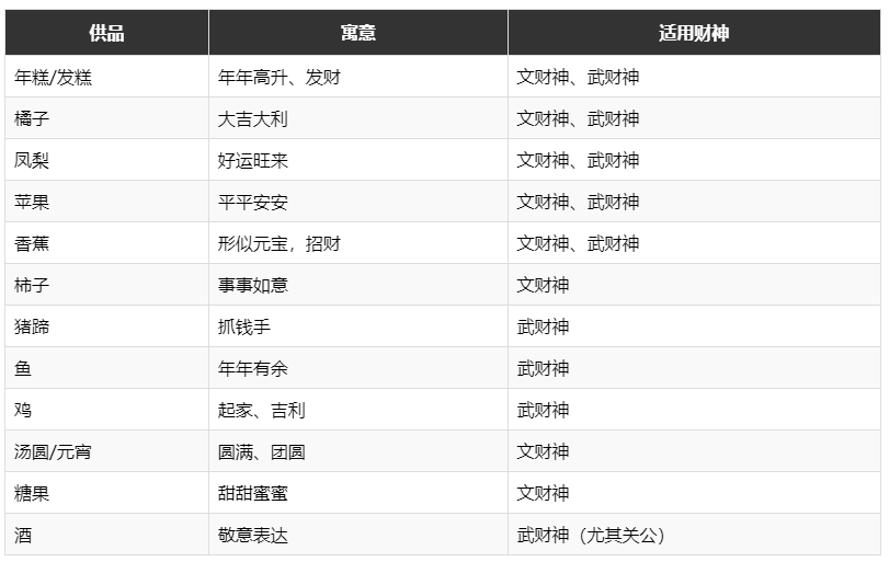 五、不同财神诞辰的供品讲究