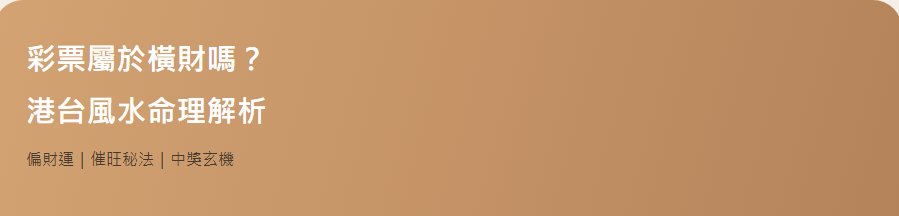 ※ 本文依據港台地區風水命理知識撰寫,僅供參考。購買彩票應理性投注,勿沉迷。