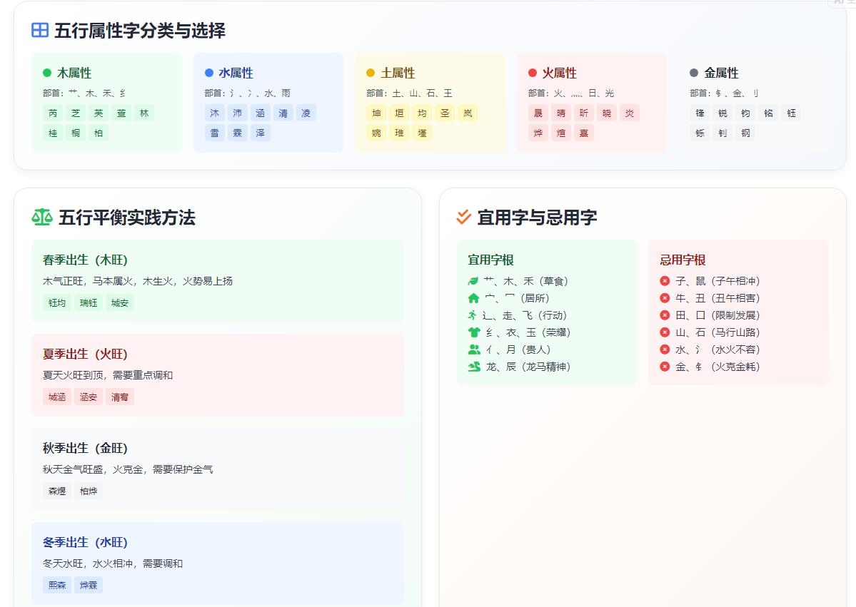 五行调和是关键:2026 丙午马年火旺,起名应以水调候、金生水、木助火为核心,优先选用水、木属性字,慎用火、金属性字。