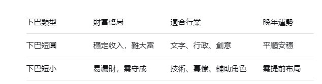- 若下巴短圓:走文職、創意路線,避開激烈競爭,照樣能有穩定收入。