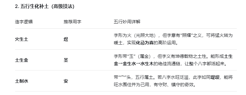 - 求流通:善用“煜”(火生土)、“圣”(土生金)等生化之字,让八字五行一气呵成,生生不息。