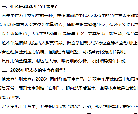 2026年虽是"双火之年",但只要提前做好准备,合理化解,不仅能顺利度过,还能收获意想不到的机遇。记住,太岁不是凶神,而是守护神,顺之则吉,逆之则凶。