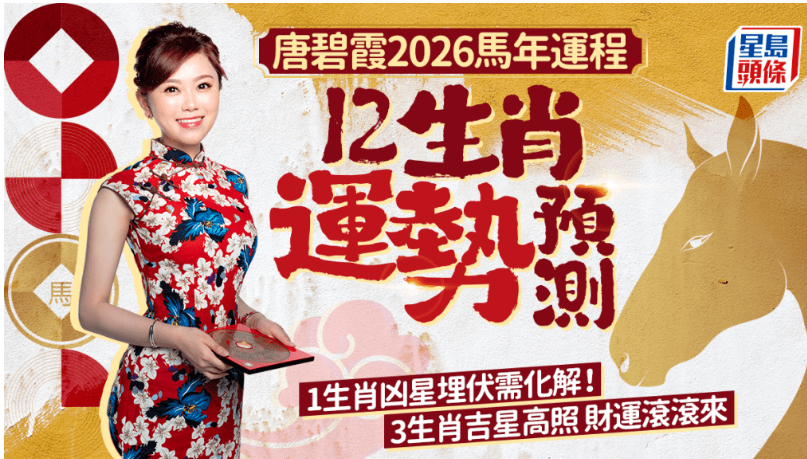 2026年马年运程,唐碧霞分享12生肖运势!今年除了肖马因本命年犯太岁外,究竟哪个生肖行大运?哪个生肖今年要小心防犯?如遇上凶星而可如何化解?留意下文,12生肖财运一文看清!